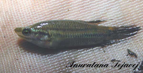 The water was tinted brown. Hundreds of Trichopsis vitatus were seen swimming in open water. We looked for Betta’s bubblenest in the ‘purse’ of Nypa fruiticans, or ‘Kapok Jark’. We also saw Half-beaked liverbearer (Dermogenys pusillus) in the catch. For the whole one and a half hour wandering in the swamp, bited by insects, annoyed by troops of ants, scared by snake, only one female Betta sp. ‘Mahachai’ was caught under the only one spotted bubblenest. In fact, we found two nests, however, the other was full of eggs –we just walked away without any disturbance. We departed the site with great disappointment and profound concern for the survival of the species.