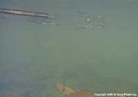 We did not want to come back with empty hands so we continue our search. We drove further to the District of Kra Tum Ban where we had been in October 2001 (see Betta sp. ‘Mahachai’, an article by Nonn Panitvong). After a quick lunch at a noodle vender on the other side of the street, we crossed the busy road to the swamp. Locating in front of us was the swamp we had visited nine months ago but to our eyes was a different place. The palms were thinned out and the water is covered with green alienated floating water fern (Azolla sp.).