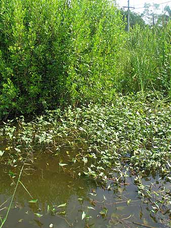 หนองน้ำตื้น และมากด้วยต้นผักบุ้ง หญ้ารกรุงรังพอดีมีช่องรอด