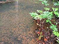 ที่ด้านหนึ่งของบ่อจะเป็นจุดที่น้ำไหลล้นออกไปเป็นลำธารเล็กๆ