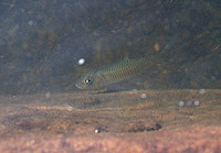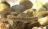 ลูกปลาตัวเล็กๆ จะมีแถบสีทอง และดำคาดอยู่พลิกตัวไปมาอยู่ในน้ำที่ไหลเชี่ยว
