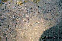ถึงแล้วจ้าถ้ำปลาเราลงจากรถด้วยความรวดเร็วพร้อมกล้อง และกระชอนขนาดเท่าฝ่ามือพุ่งลงไปที่สายน้ำเล็กๆ ทีไหนออกมาจากในถ้ำเดินผ่านลานหญ้าสั้นๆ ที่เต็มไปด้วยกบขนาดเล็ก(เยอะมาก)ไปถึงลำธารน้ำลึกแค่ตาตุ่มมันจะมีปลาไหนหนอเอ้านั่นไงเจอแล้วปลาอะไรอ่ะตัวเล็กๆ ว่าแล้วก็ถ่ายรูป(มัวๆ )กลับมา1รูปแล้วก็จัดแจงใช้กระชอนอันจิ๋วไล่จับปลา(ได้ด้วยแฮะ)
